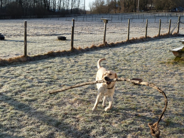 Here is a fun photo I took of Sunny this frosty morning. He is a big shot with this huge sunflower plant he pulled off the compost pile yesterday.