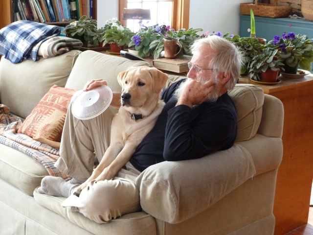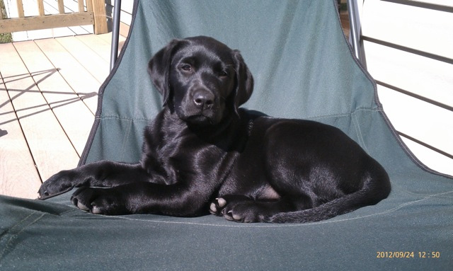 This was taken 8/19/12 just one day short of his 7 month birthday. He has one more class and then he is done his basic obedience and manners. He is doing very well. A few weeks ago we took him to Maine for one of Joe’s shoots. The trip was 6 hours and he was amazing. – The Churchs