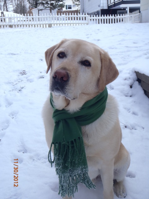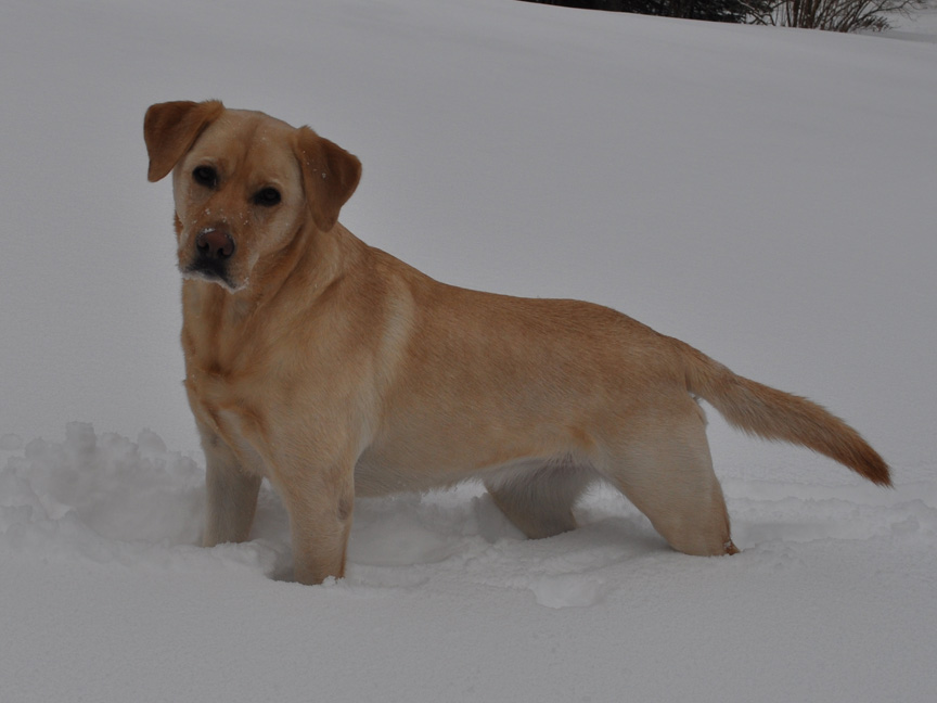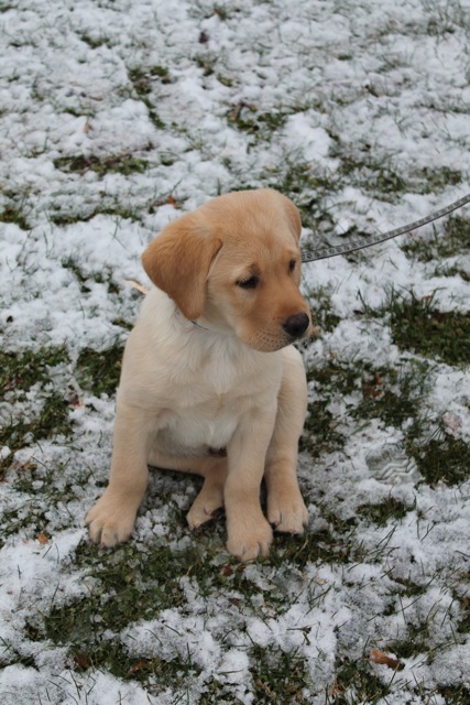 Hondo The yellow lab puppy, enjoying his first snowfall!