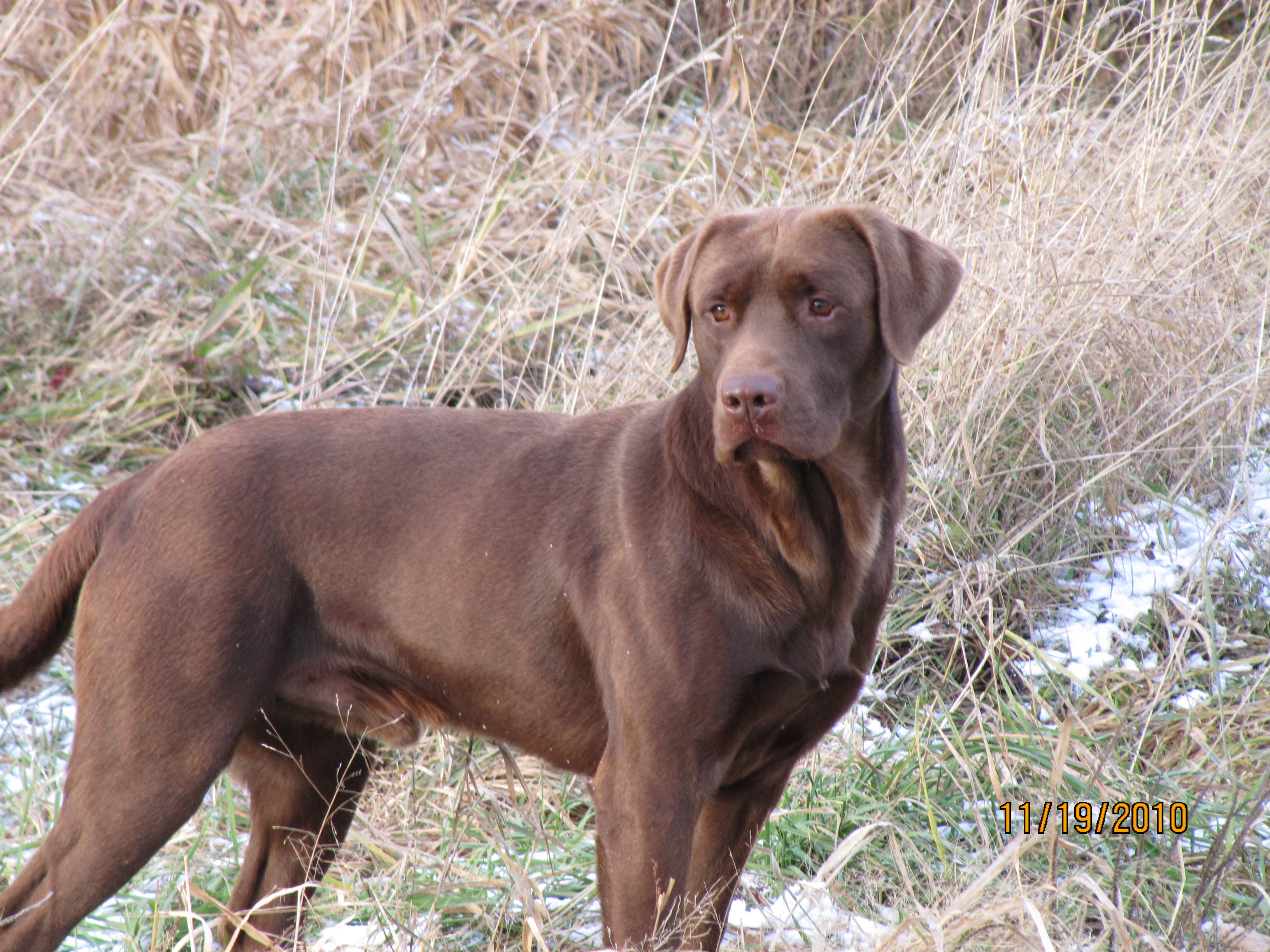 Two Chocolate labs from Heather Hollow Farm