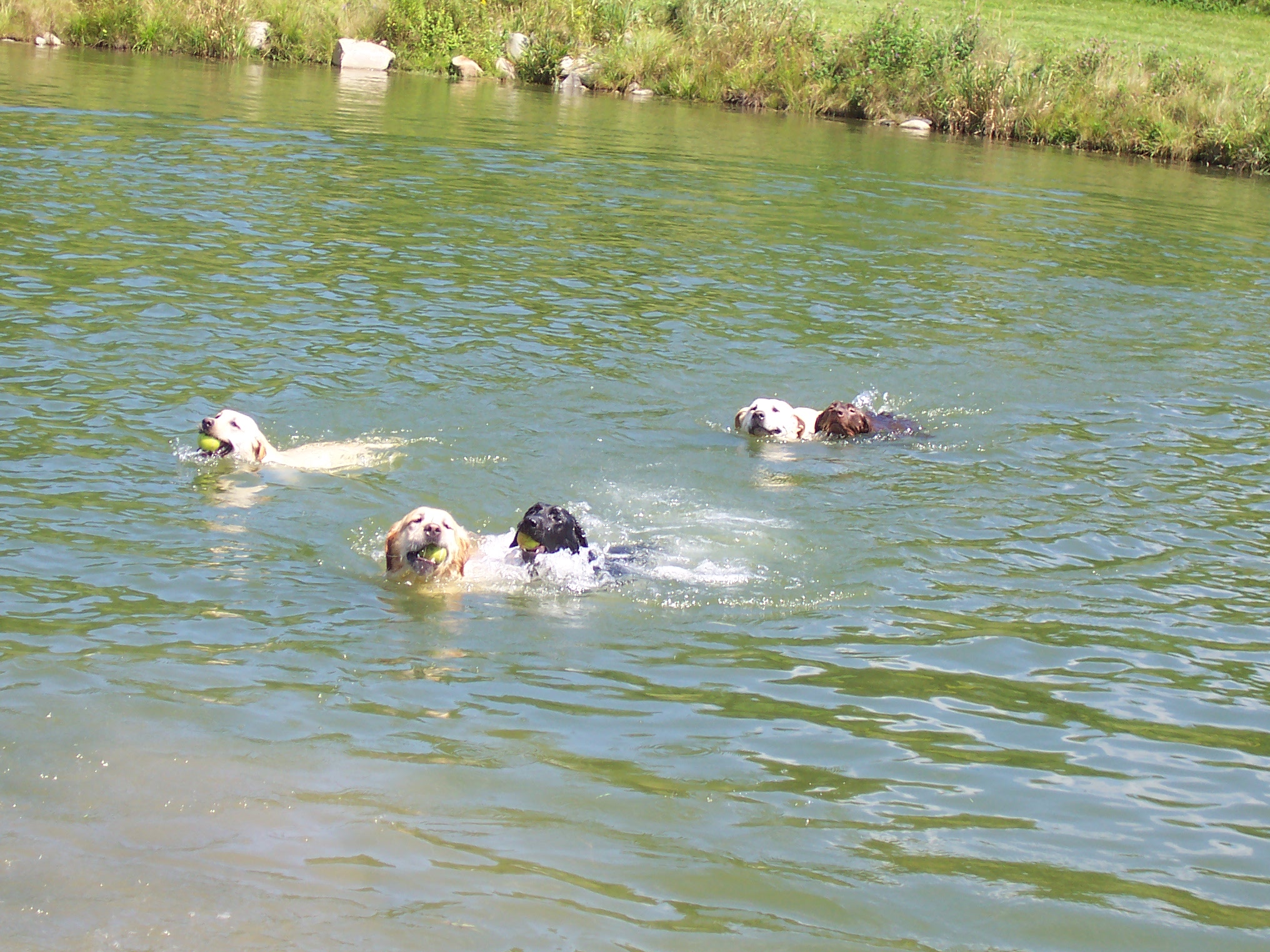 Heather Hollow Labs go for a swim in our pond